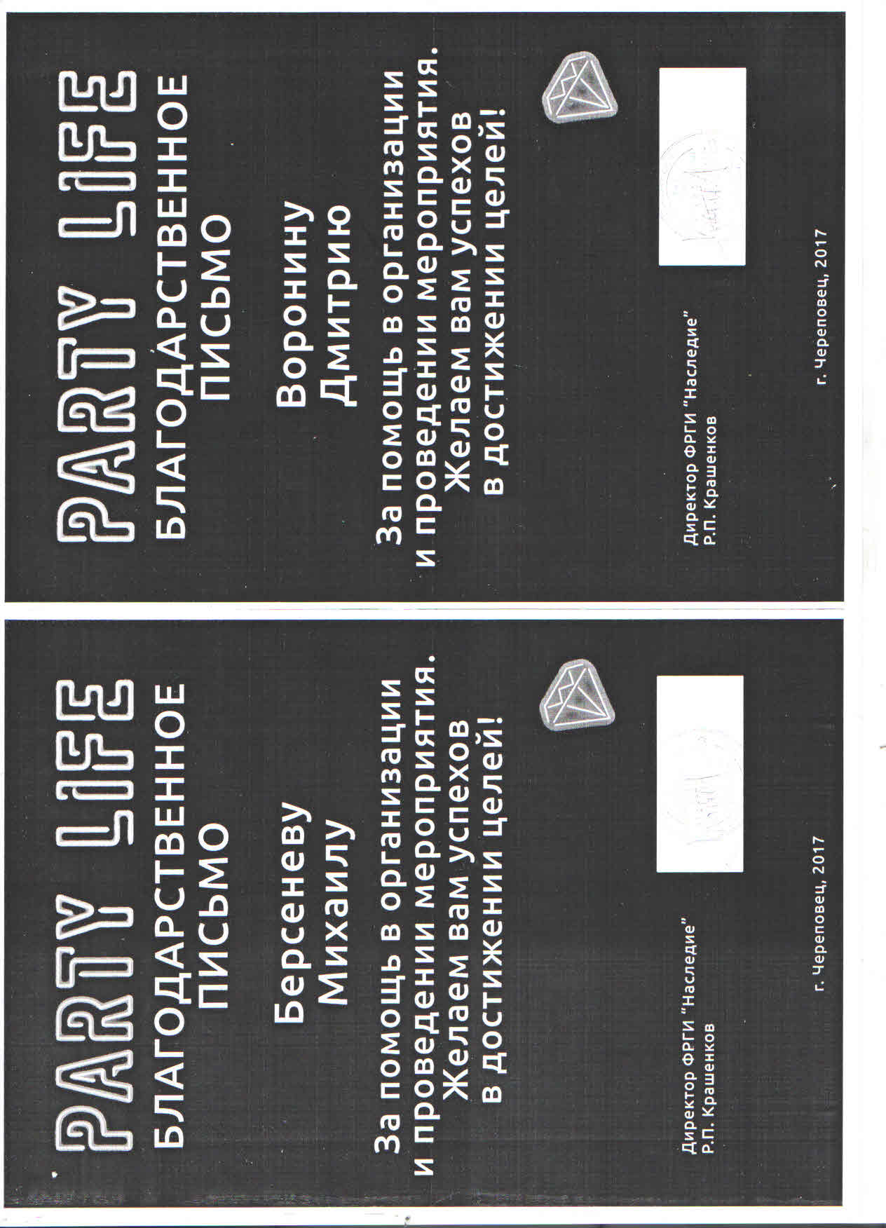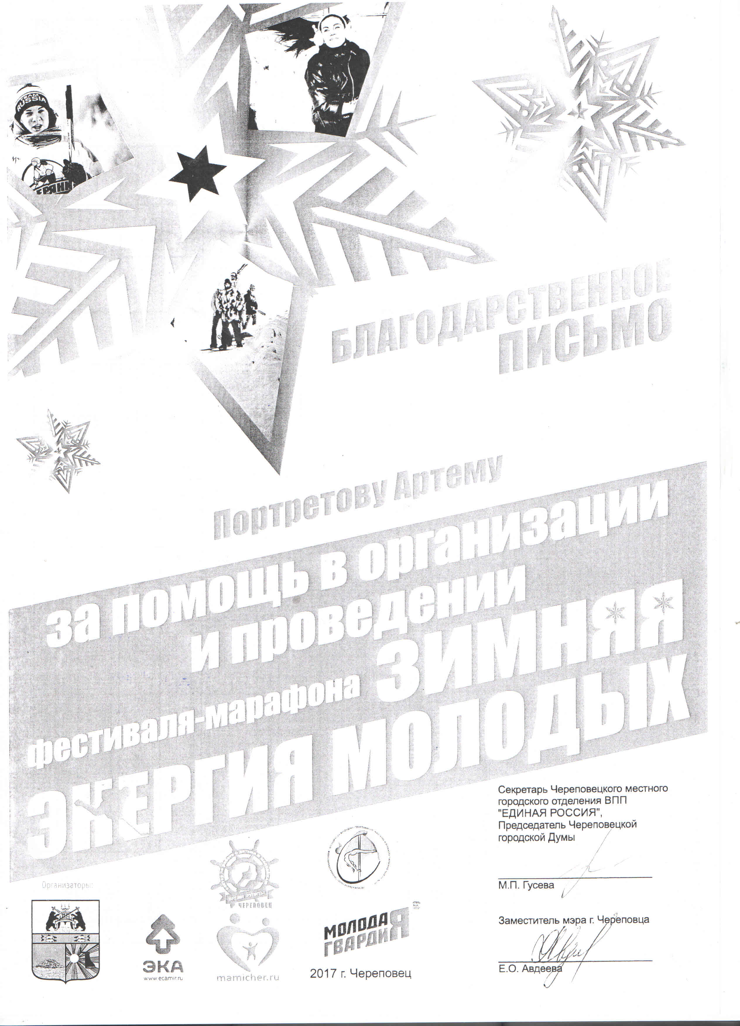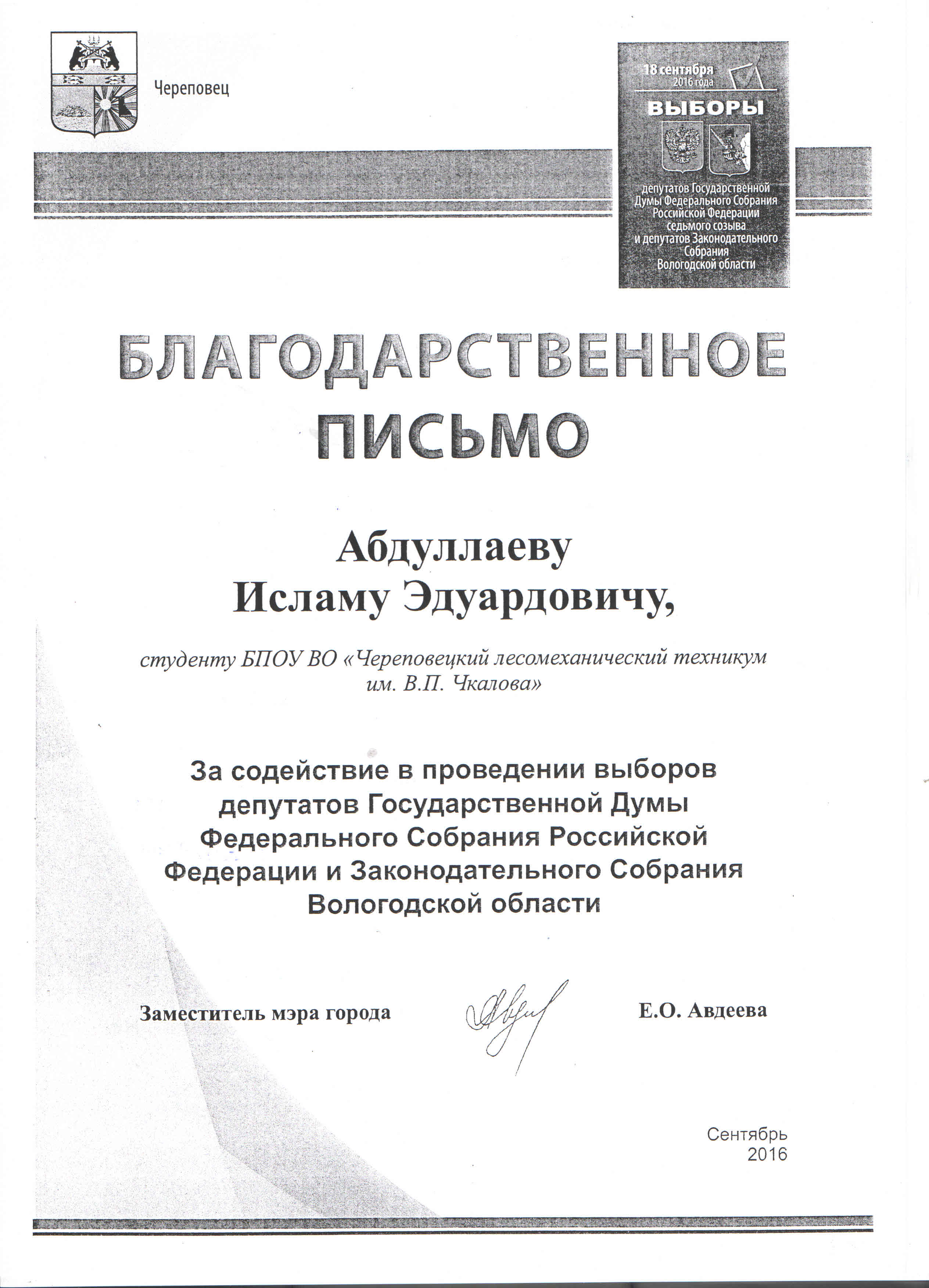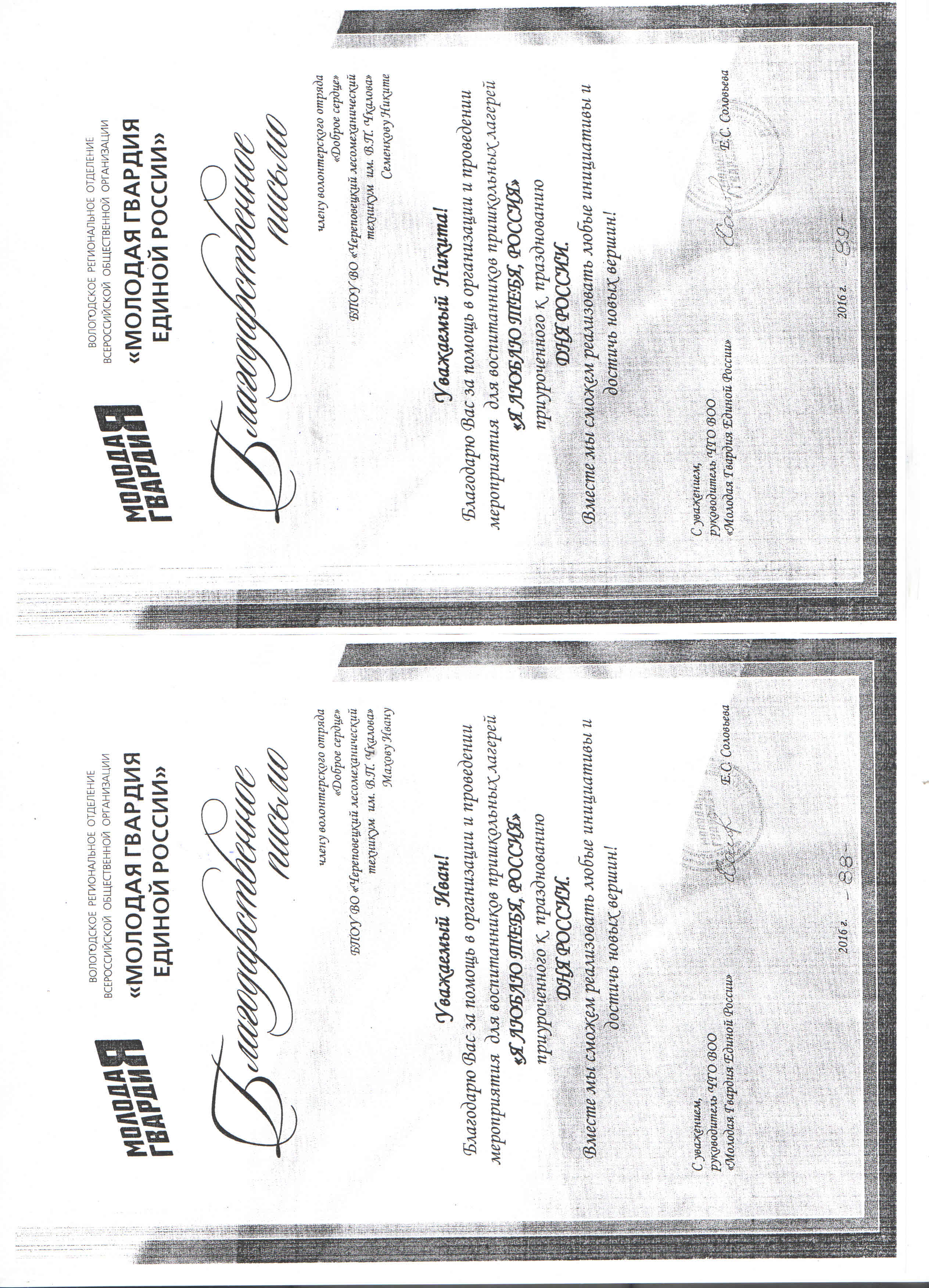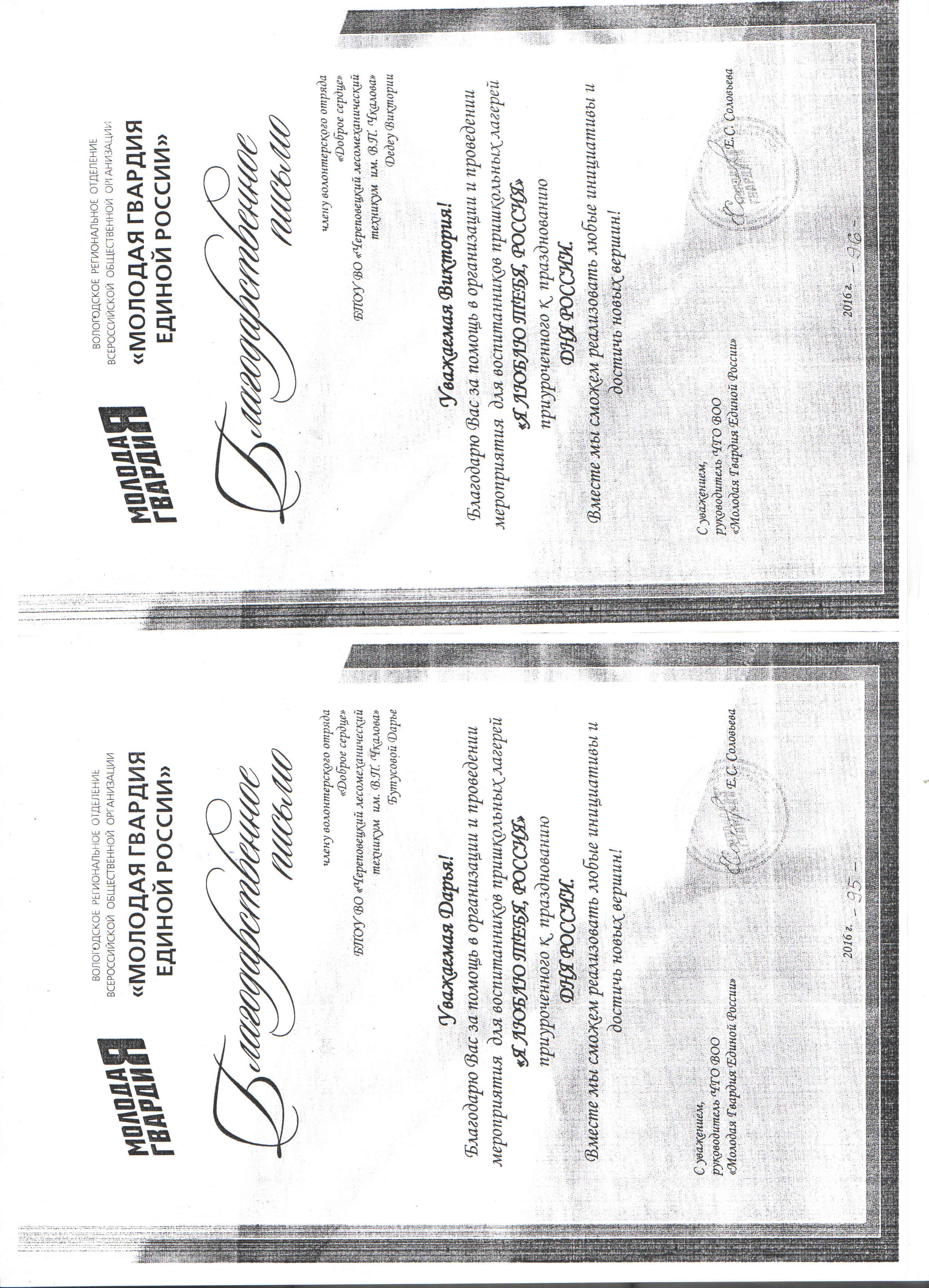 Накануне праздника отряду вручена благодарность мэрии Череповца за активное участие в общегородских субботниках по озеленению и благоустройству территории города.