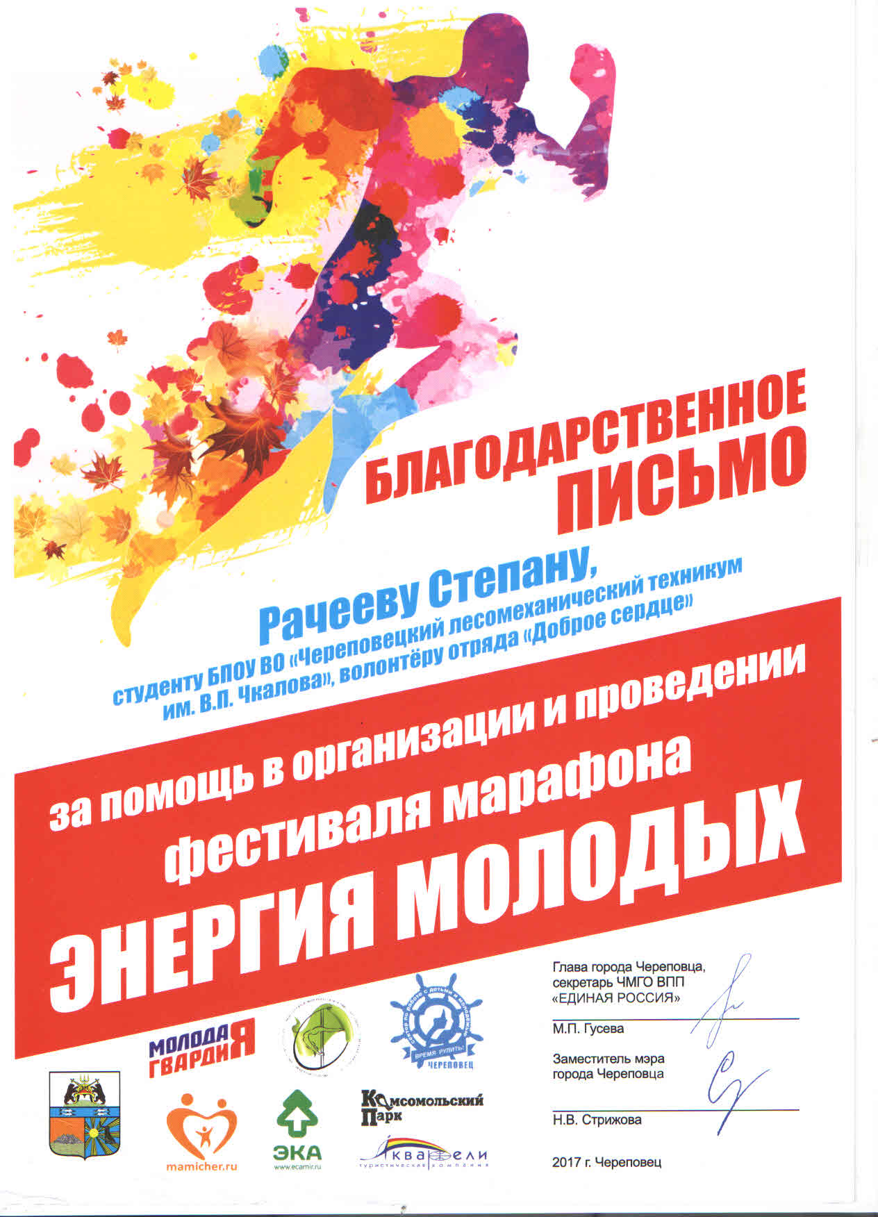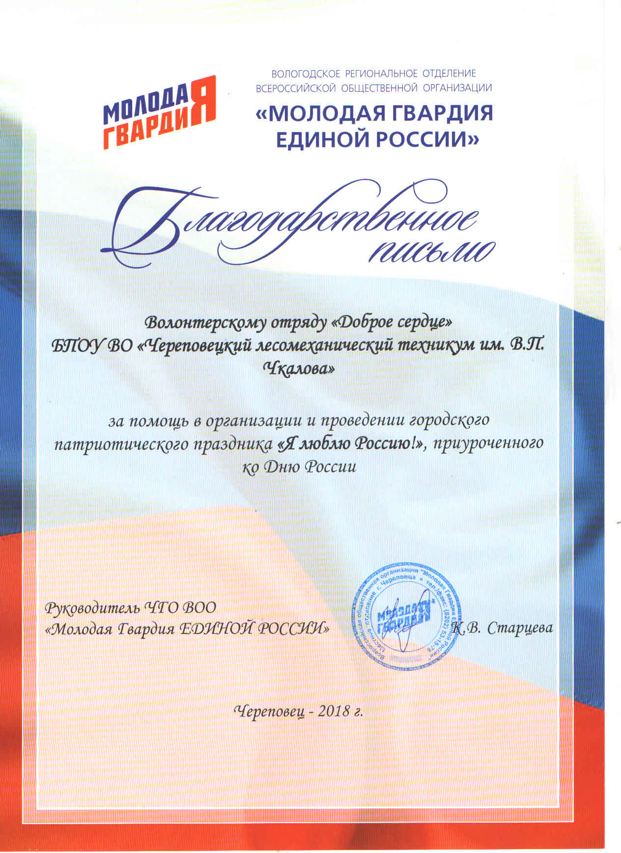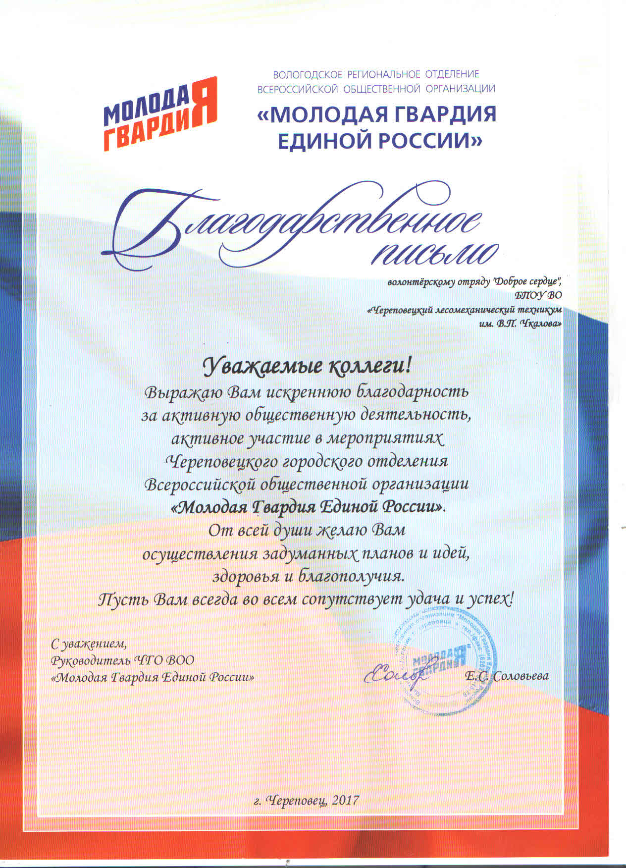 31.10.2019 г. Члены волонтёрского отряда «Доброе сердце» техникума являются ещё и членами ЧГОВОО "Молодая Гвардия Единой России" и активно участвуют во всех городских мероприятиях, помогая в их организации и проведении.