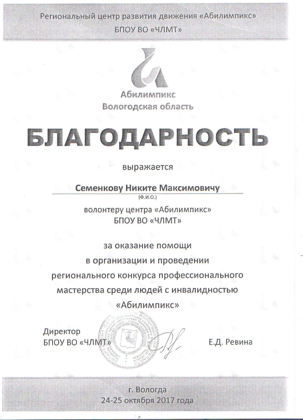 27 марта 2019 года на базе регионального центра поддержки инклюзивного профессионального образования БПОУ ВО «Череповецкий лесомеханический техникум им. В.П.Чкалова» прошло обучение волонтеров регионального конкурса по профессиональному мастерству среди инвалидов и лиц с ограниченными возможностями здоровья «Абилимпикс». Курсы проводились по программе обучения волонтеров основам взаимодействия с инвалидами по методике «Волонтер «Абилимпикс». В рамках обучения волонтеры получили необходимые знания о правилах взаимодействия с инвалидами и лицами с ограниченными возможностями здоровья. По итогам обучения более 35 волонтеров получат сертификаты, которые позволят им принимать участие в качестве волонтеров в Региональных и Национальных чемпионатах «Абилимпикс».