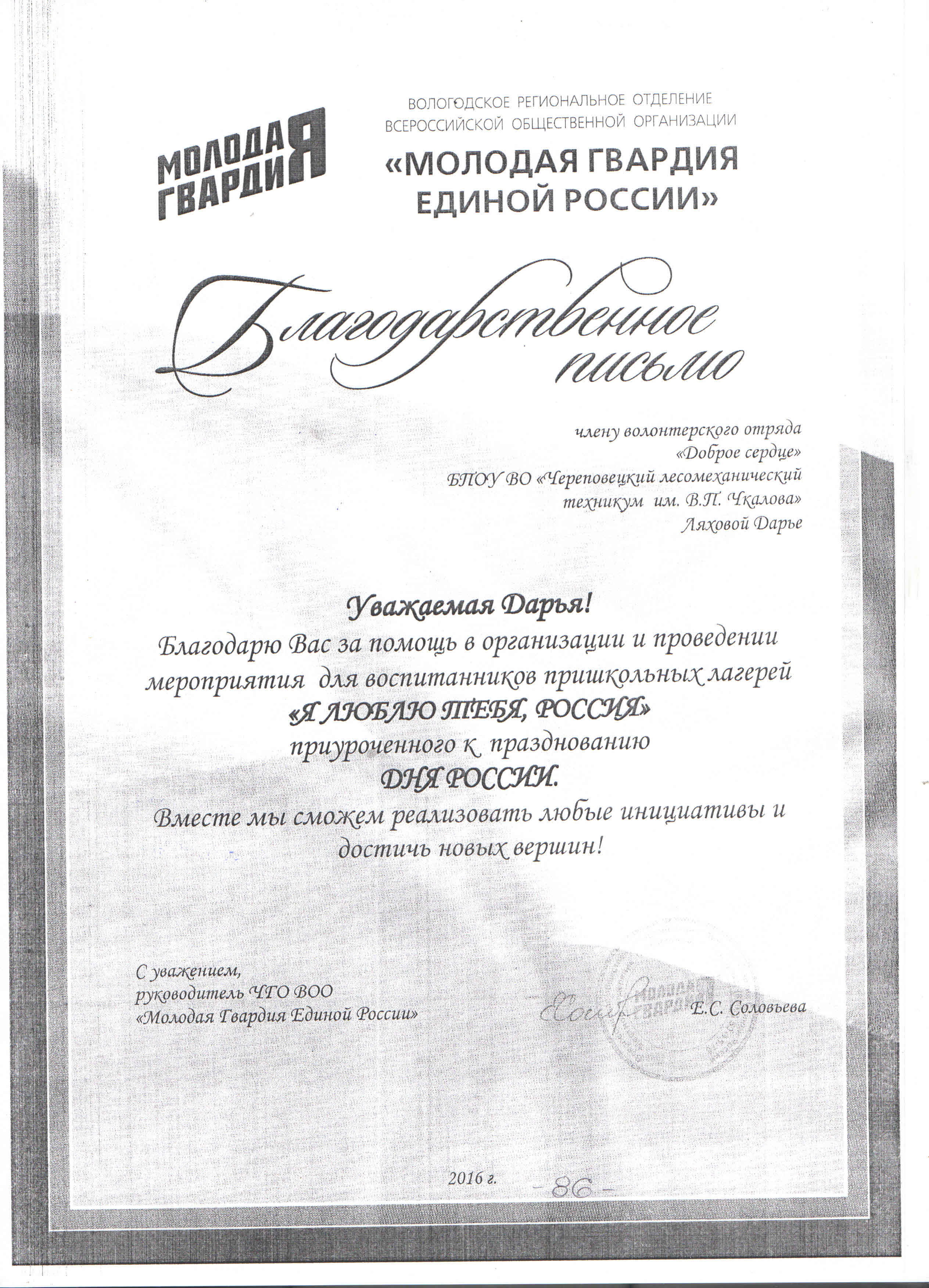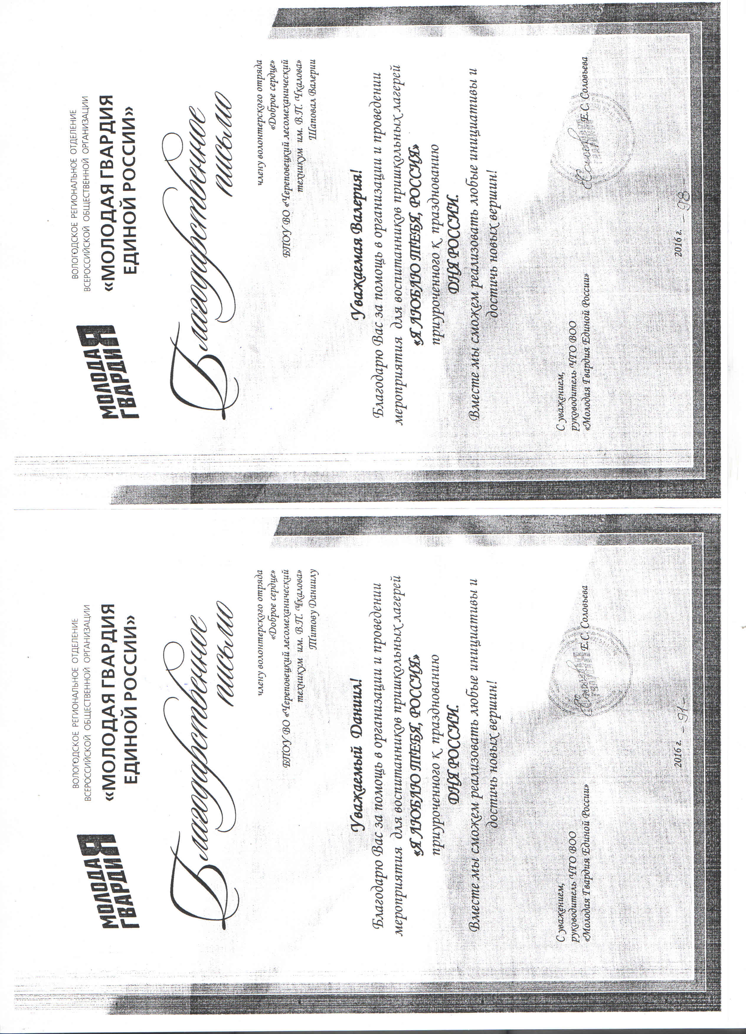 15.03.2020 - 13 марта 2020 года в школе № 23 состоялась отчетно-выборная конференция Череповецкого городского отделения Всероссийской общественной организации "Молодая Гвардия Единой России». В ходе конференции были вручены благодарственные письма: лидеру волонтерского отряда «Доброе сердце», председателю Студсовета техникума Семенову Даниилу за активное участие в деятельности ЧГОВОО «Молодая Гвардия Единой России" и педагогу-организатору, руководителю волонтерского отряда Соколовой Н.П. за активное участие в реализации молодежной политики в Череповце.