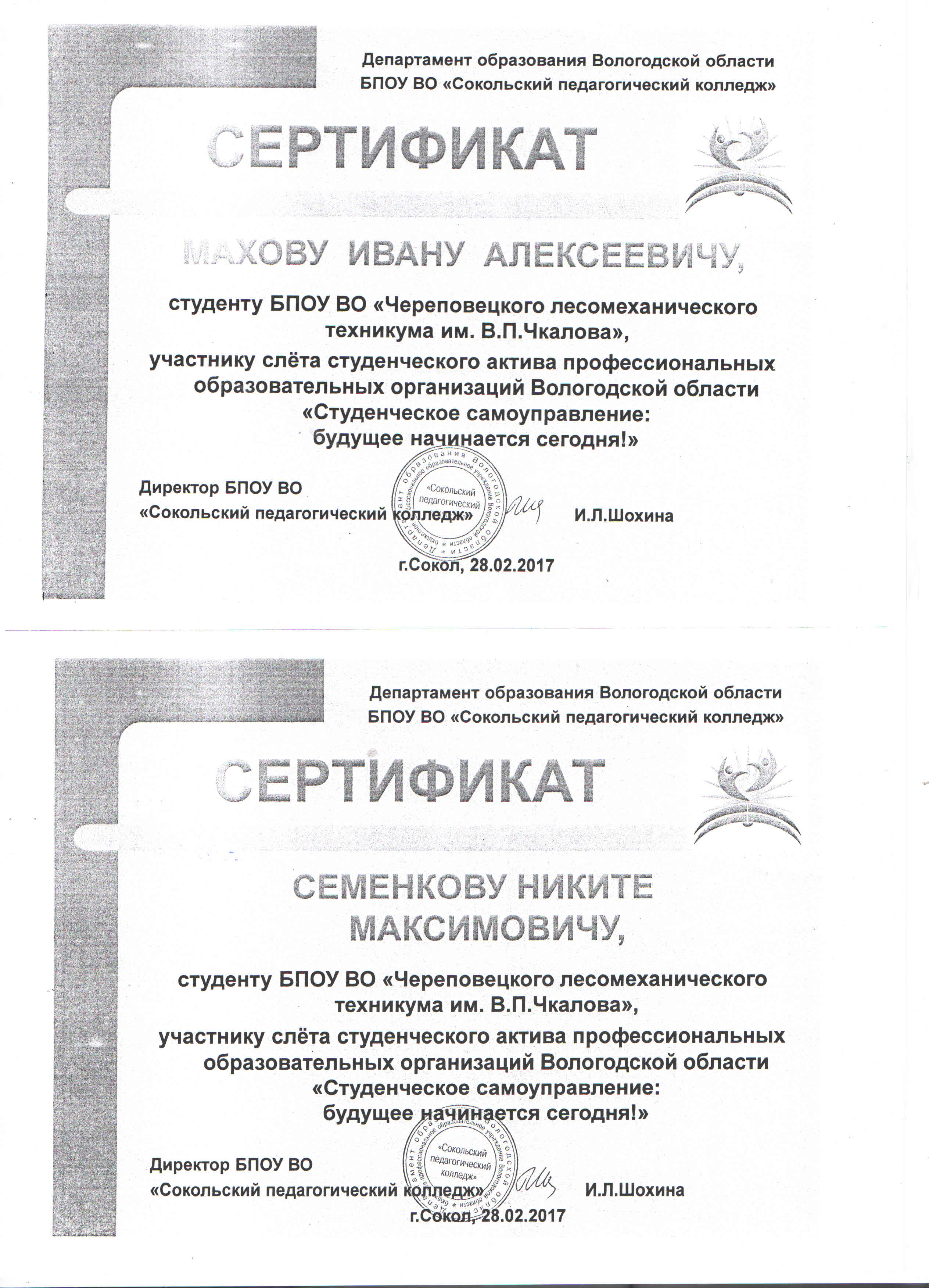 С 20 по 26 мая 2018 г. студентка группы ЮР-21 техникума Уханова Ольга принимала участие в молодёжном образовательном форуме Северо-Западного федерального округа "Ладога". Одна из 25 участников Вологодской делегации студентов, Ольга выбрала направление "Добровольчество". Целью форума являлось содействие в