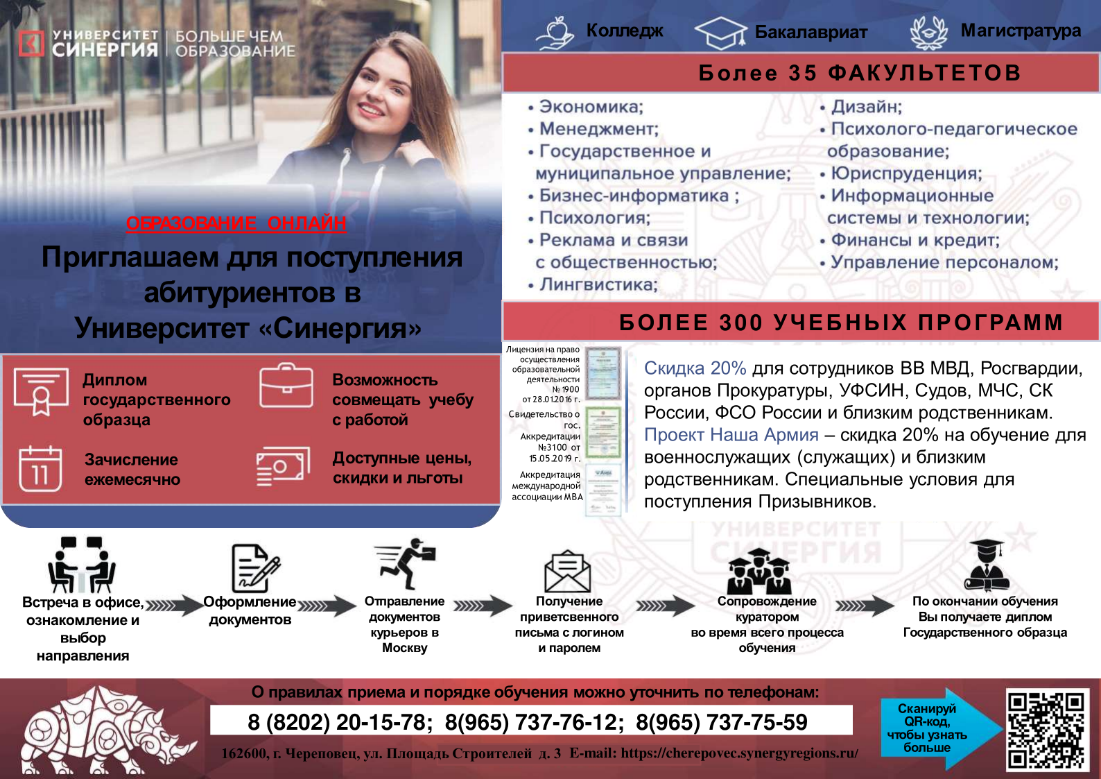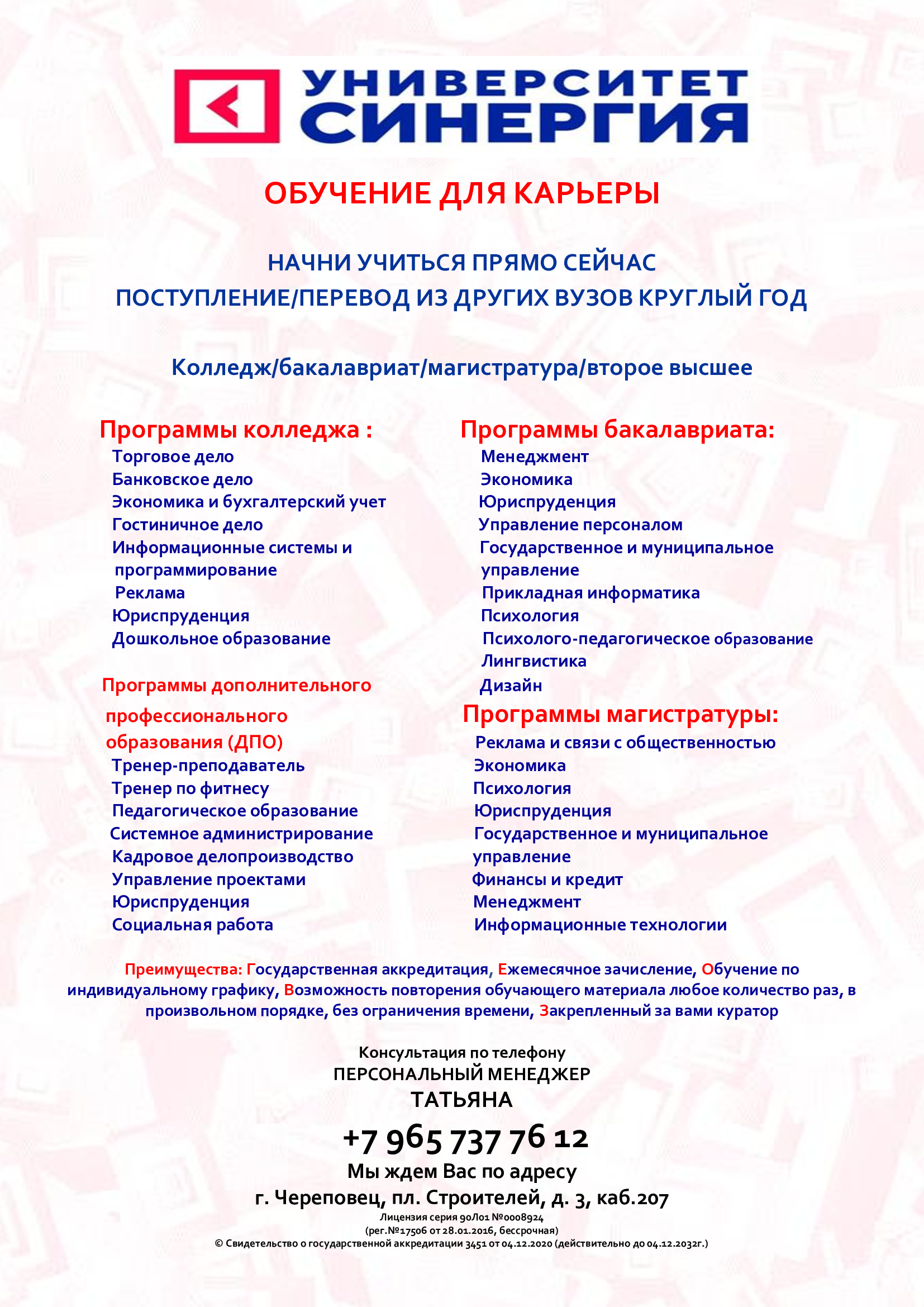 | Московский финансово-промышленный университет «СИНЕРГИЯ», представительство в Череповце. |