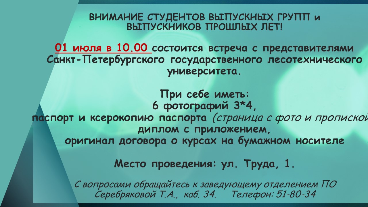 | ФГБОУ ВО «Санкт-Петербургский лесотехнический университет имени С.М.Кирова» |